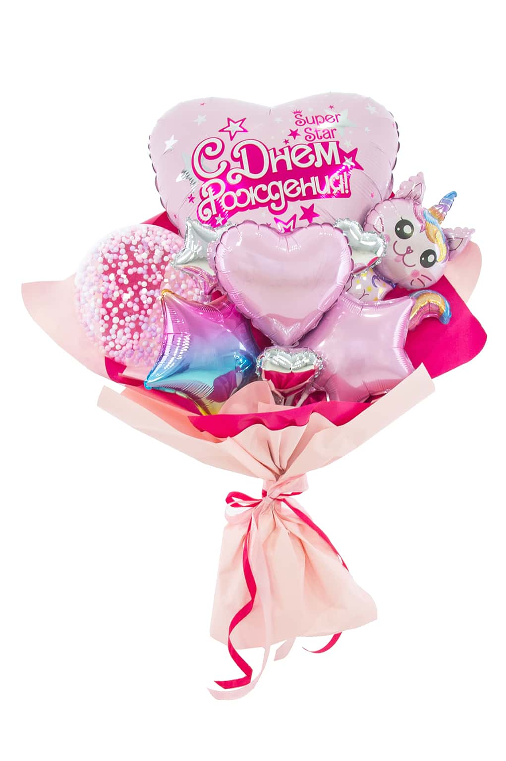 Букет из фольгированных сердец розовый с надписями