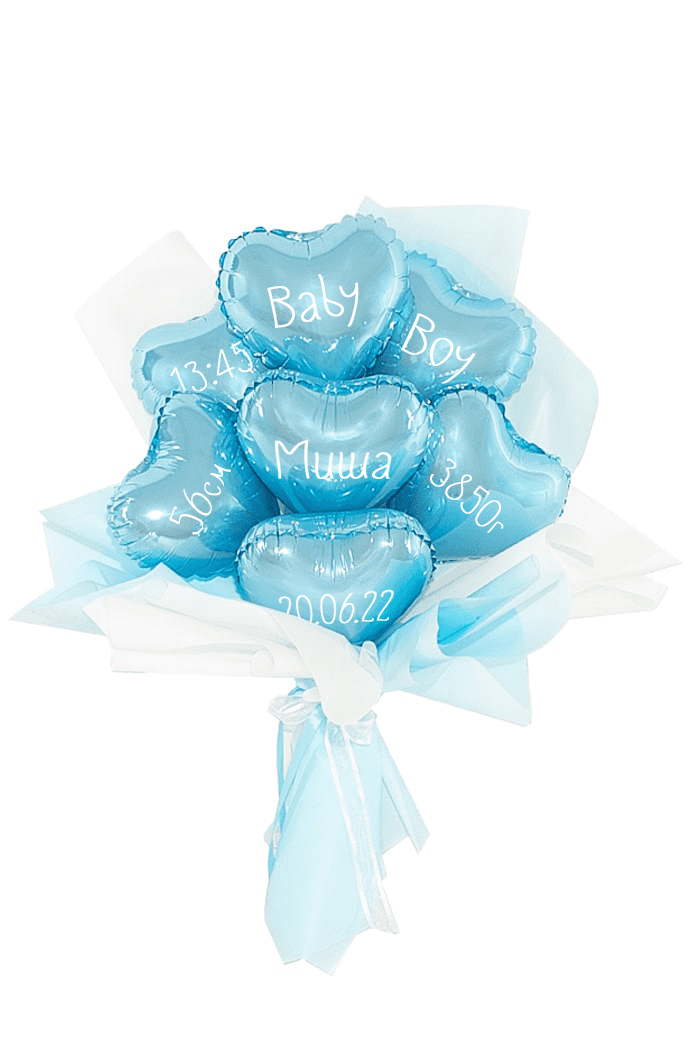 Букет из фольгированный сердец голубой с надписями