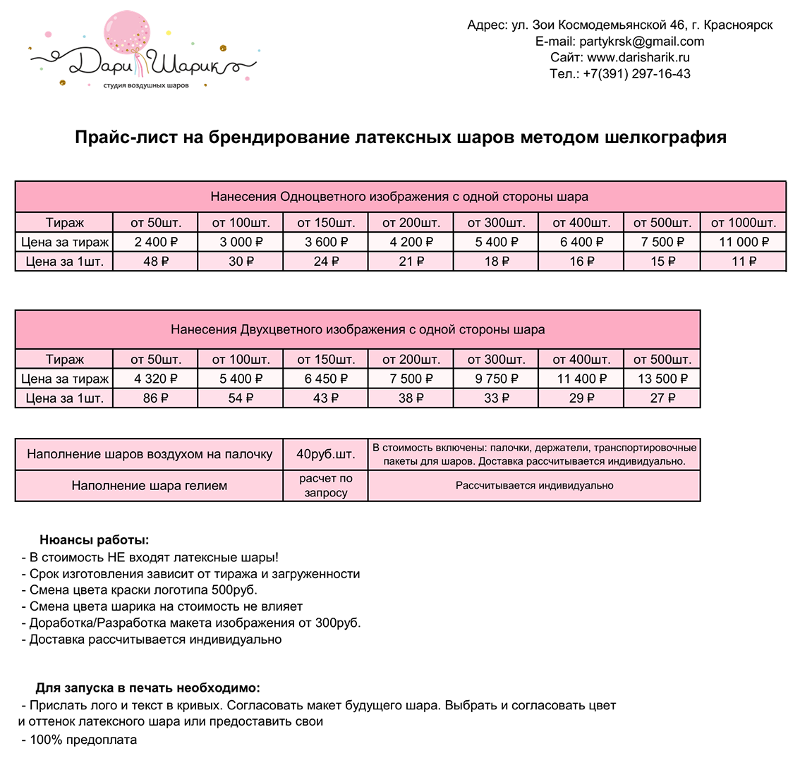 Наша фирма использует качественные шары они не имеют резкого запаха, при раздутии получается равномерный окрас без просветов и т.п., что придает шару не только приятный внешний вид, но и определенный запас прочности и надежности.